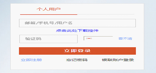 4.注册完成后,下载安全控件,登录到“银联在线”